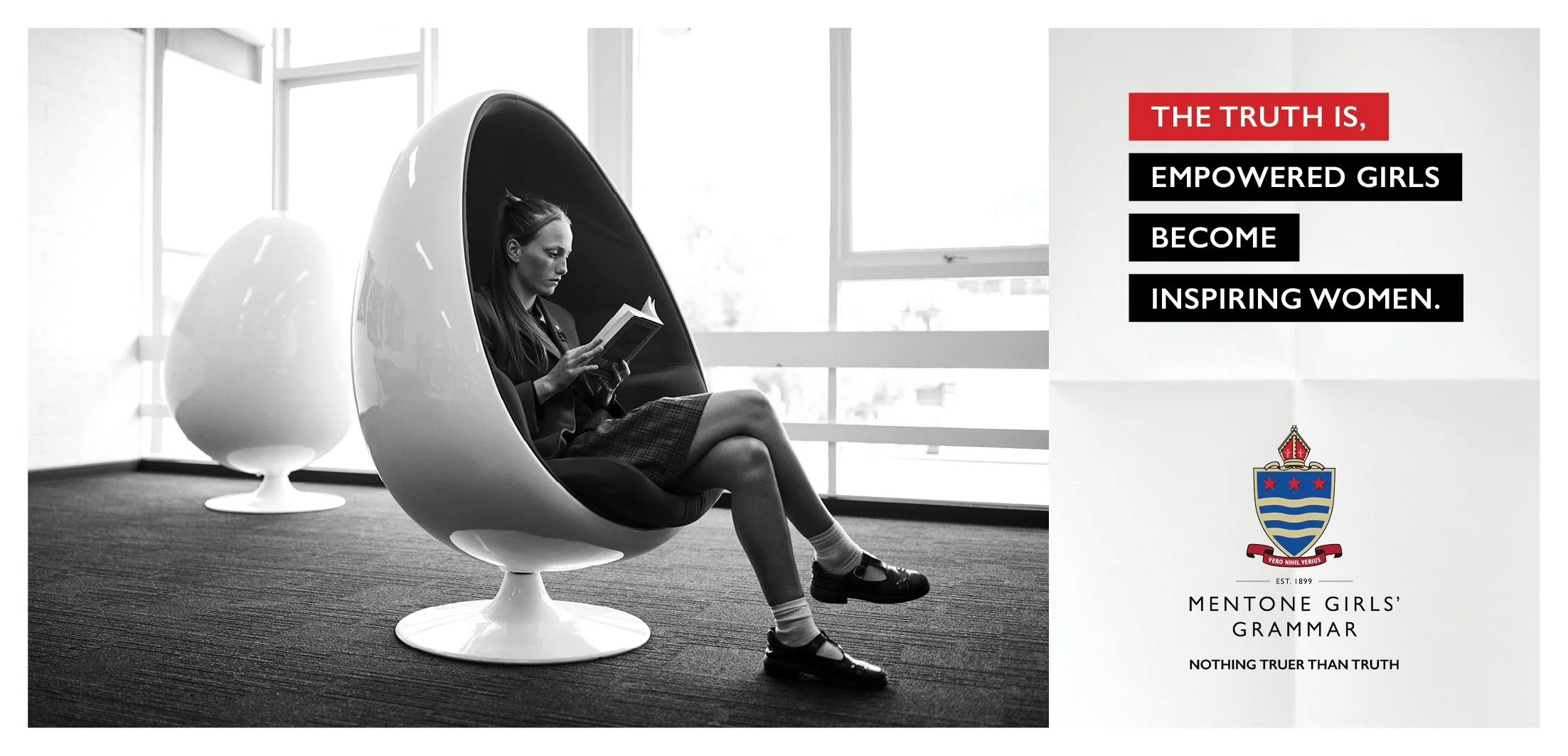 The debate over co-ed versus single sex education is as polarising as it is passionate. Champions of the latter, the educators at Mentone Girls’ Grammar felt a responsibility to speak for their category and told us to run towards the argument, not away from it. Armed with that sort of client courage, it was no surprise we found the idea embedded in Mentone Girls’ Grammar itself. Specifically, the philosophy that’s graced the school gates since 1924. Vero Nihil Verius. Nothing Truer Than Truth.